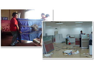 到達目的地后鋪設(shè)地板保護材料后開始工作;電器類按要求接通電源及其他線路。